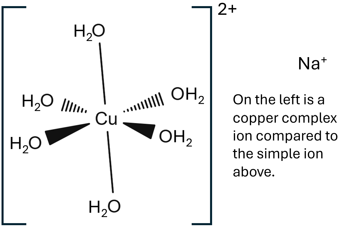 The Zinc atom and its only stable ion has a complete d subshell, this means that zinc is not a transition metal, but it is a d-block metal. Transition metal ions will produce complex ions these are written in [square brackets] with he overall charge. A complex ion is one which has coordinate bonds to ligands, a coordinate bond is one in which a bond is formed from two electrons from the same species, the amount of coordinate bonds to a complex ion is known as its coordinate number. A ligan is a molecule or ion which provides the coordinate bond to the complex ion, typical mono-dentate ligands are;